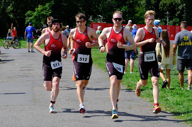 Die drei gewerteten Starterinnen finishten gemeinsam, während Stefanie beim Radfahren ausstieg.